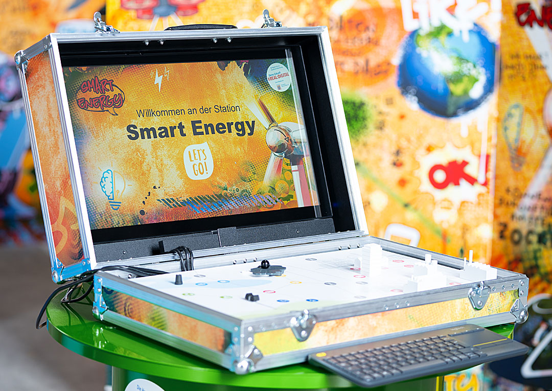 Vernetzung ist smart – nicht nur in der Energieversorgung, sondern auch in der modernen Industrie oder dem intelligenten Zuhause. Die Schülerinnen und Schüler steuern an dieser Station selbst ein smartes Energienetz zu verschiedenen Tages- und Belastungszeiten und erkennen: Nur wenn alle Energieerzeuger intelligent vernetzt sind, gelingt es, immer die richtige Menge an Energie zur Verfügung zu stellen. Welche Rolle das Internet der Dinge in den unterschiedlichsten Bereichen spielt, erfahren die Jugendlichen in einem „Chat“ mit Protagonisten verschiedener Berufe.