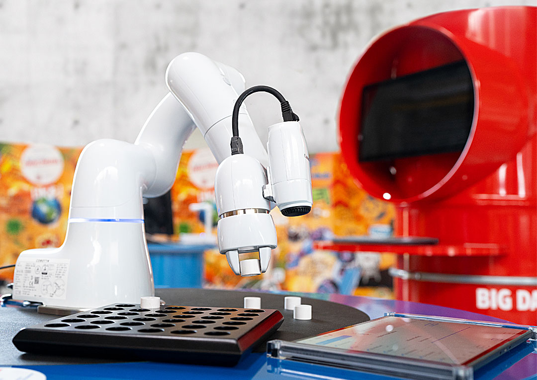 Hallo Kollege Roboter! An dieser Exponatstation programmieren die Schülerinnen und Schüler einen kollaborativen Roboter (CoBot) für verschiedene Aufgaben: ein Objekt von A nach B transportieren, Kugeln in einem Tableau sortieren oder auch einfach einen Freudentanz aufführen. Das funktioniert spielend einfach durch das sogenannte „direct teaching“, mit dem man dem Roboter die Bewegungen einfach vormacht. Im berufsorientierenden Teil der Aufgabe lernen die Jugendlichen die unterschiedlichsten Einsatzbereiche von CoBots kennen. Ach ja: Sind Roboter eigentlich männlich? Wir wissen das nicht. Unser CoBot heißt jedenfalls Kobotta 😊